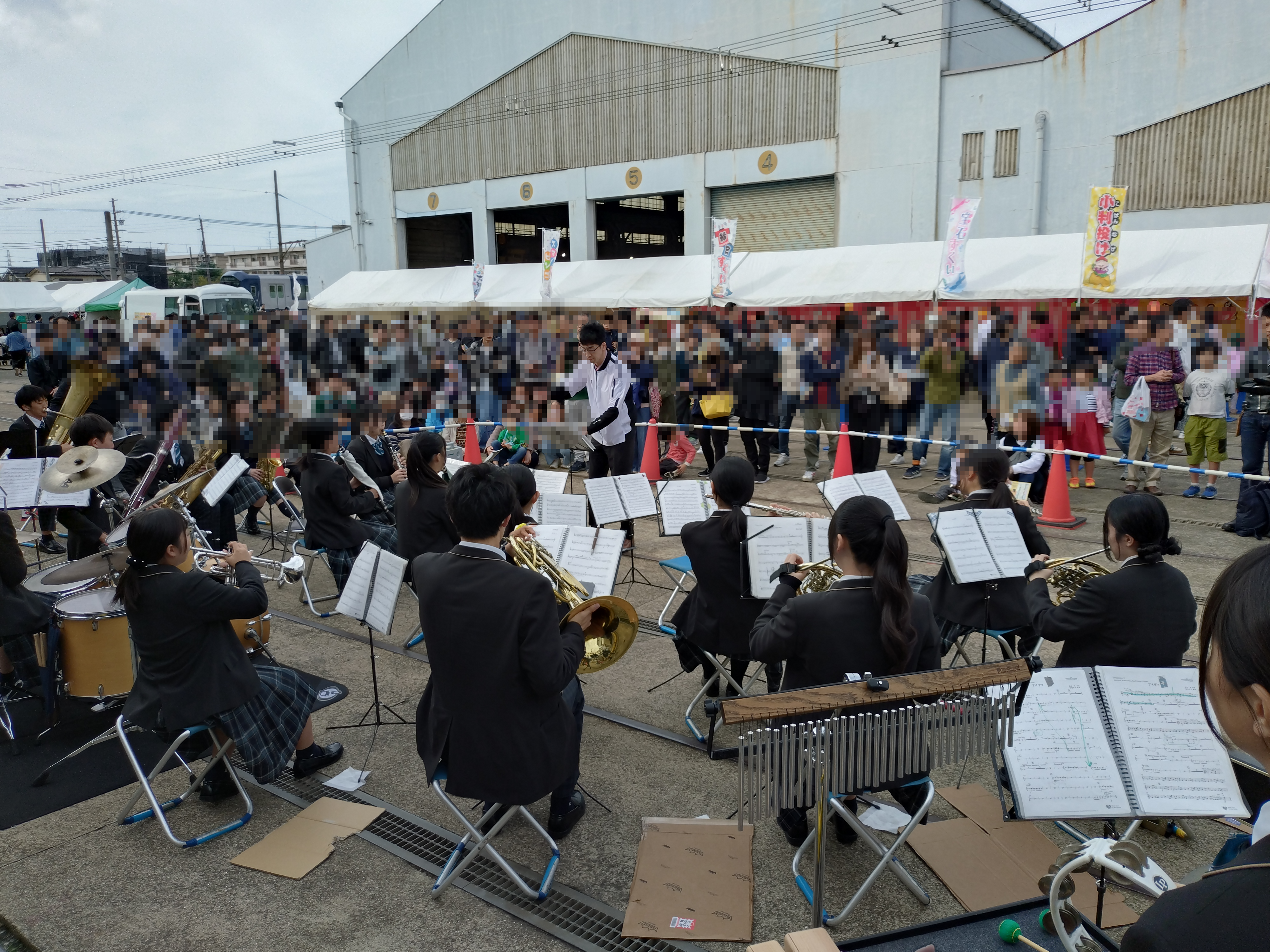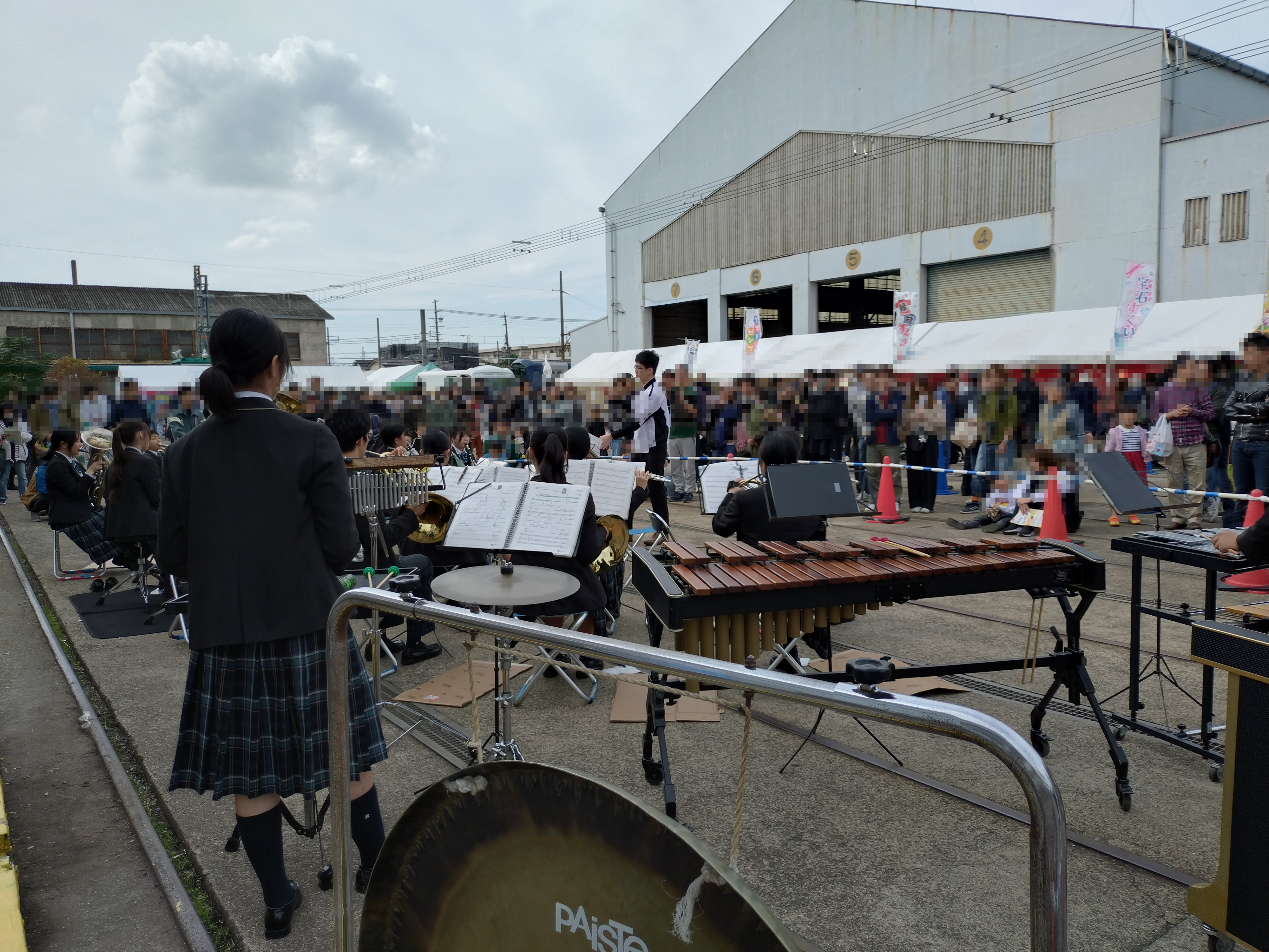 近鉄高安車庫で開催された、「きんてつ鉄道まつり」の金光八尾のブースに設置された特設ステージで、吹奏楽部が演奏しました。