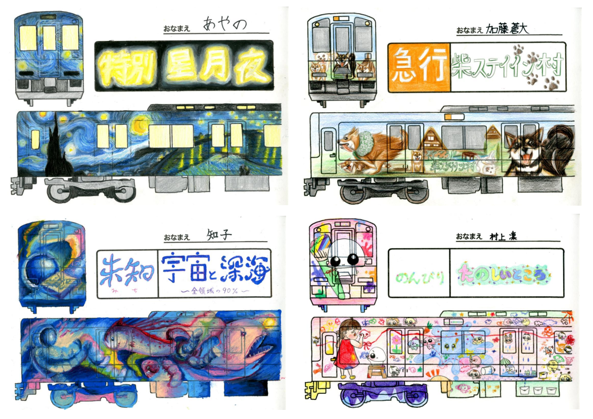 最後に、このきんてつ鉄道まつりに向けて参考作品を描いてくれた高校3年生美術コース生徒作品の一部を掲載していますので、ぜひご覧ください。