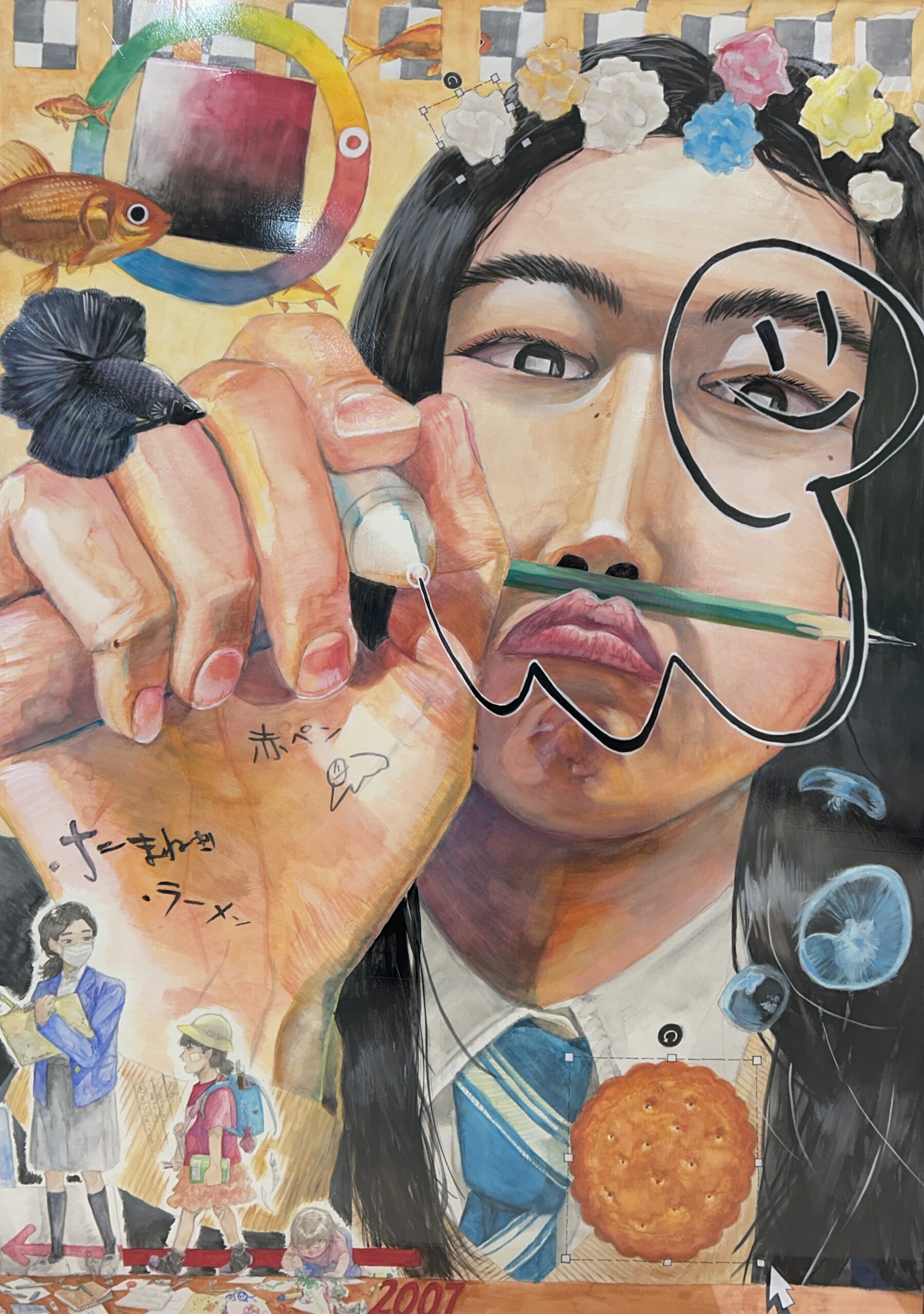 絵画部門【奨励賞】高校2年 原田 実咲「狐につままれる」