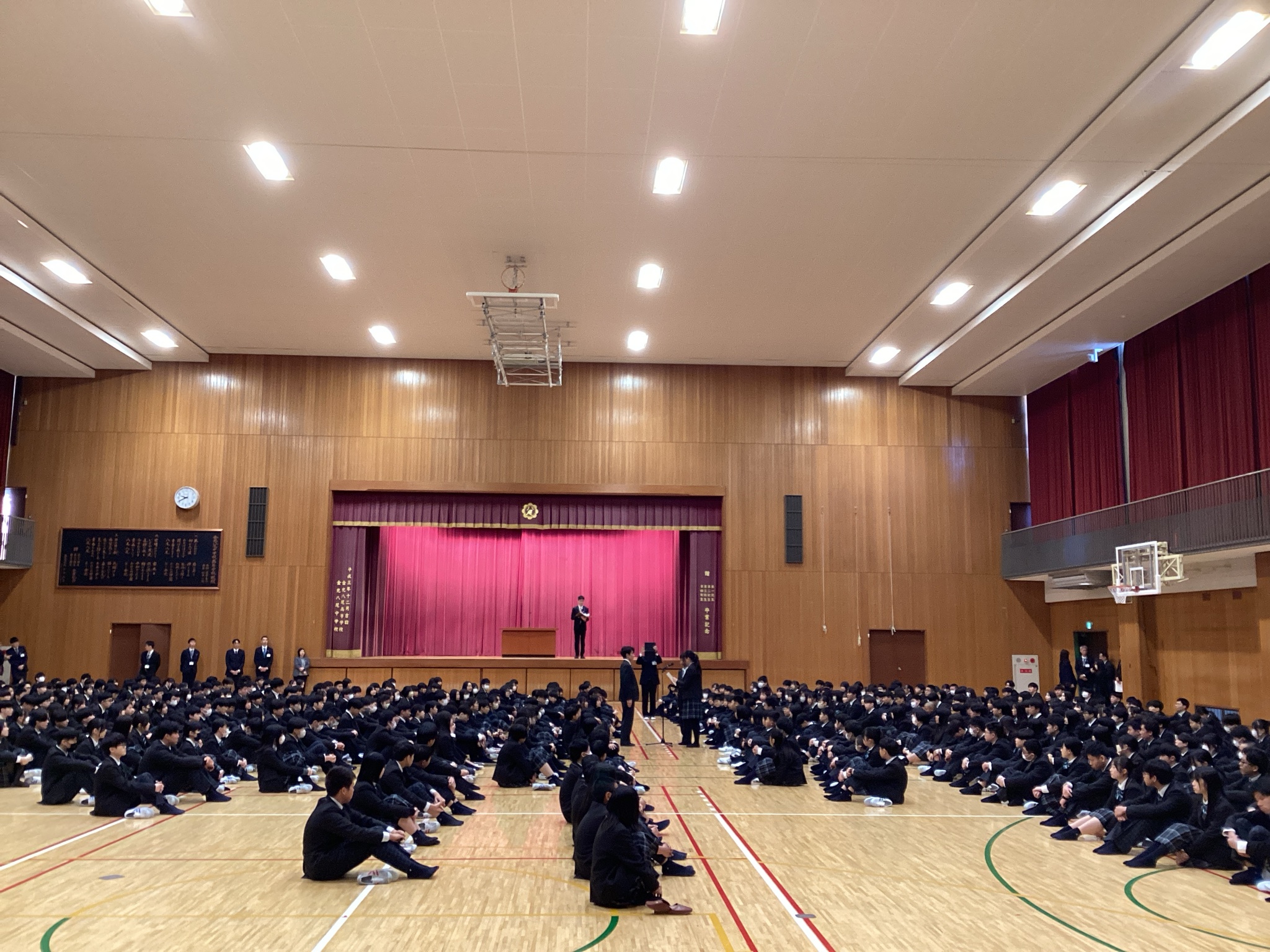 2026.04.08 共通 1学期始業式 今日から新学年がスタートしました。 生徒たちは新しいクラスや仲間との出会いに胸をふくらませています。 これからの一年が、それぞれにとって実り多く、成長を実感できる日々にしていきましょう。 また、新入生と在校生の対面式も行いました。 新入生の皆さんは、先輩から色々教えてもらってください。
