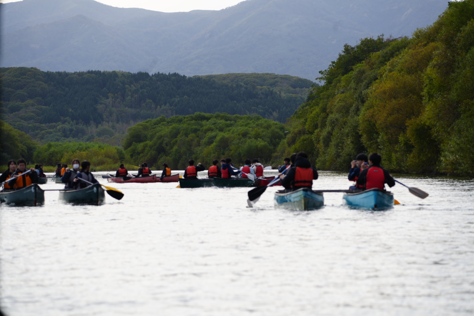 2日目は有珠山からの眺望を堪能しました。洞爺湖や昭和新山といった大自然の織り成す絶景に、生徒たちは心を奪われていました。午後からは選択体験学習として、ラフティング・カナディアンカヌー・マウンテンバイク・乗馬・ガラス工芸の5つの体験を実施しました。屋外アクティビティでは体を動かしながら自然を満喫し、屋内アクティビティでは自分の作品に向き合うなど、それぞれの体験を楽しみました。