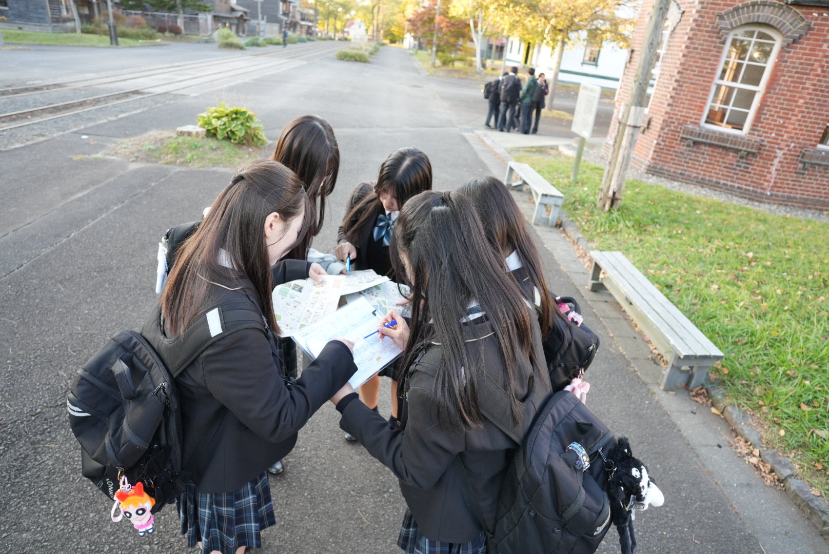 最終日となる5日目には、小樽と札幌で班別自主研修を実施しました。事前にクラスをまたいで自由に組んだ班員で下調べを行い、小樽と札幌どちらで昼食を摂るかを決めて当日を迎えました。小樽の海鮮や札幌の味噌ラーメン・スープカレーなど北海道らしい料理に舌鼓を打ち、名残惜しくも北海道を後にしました。