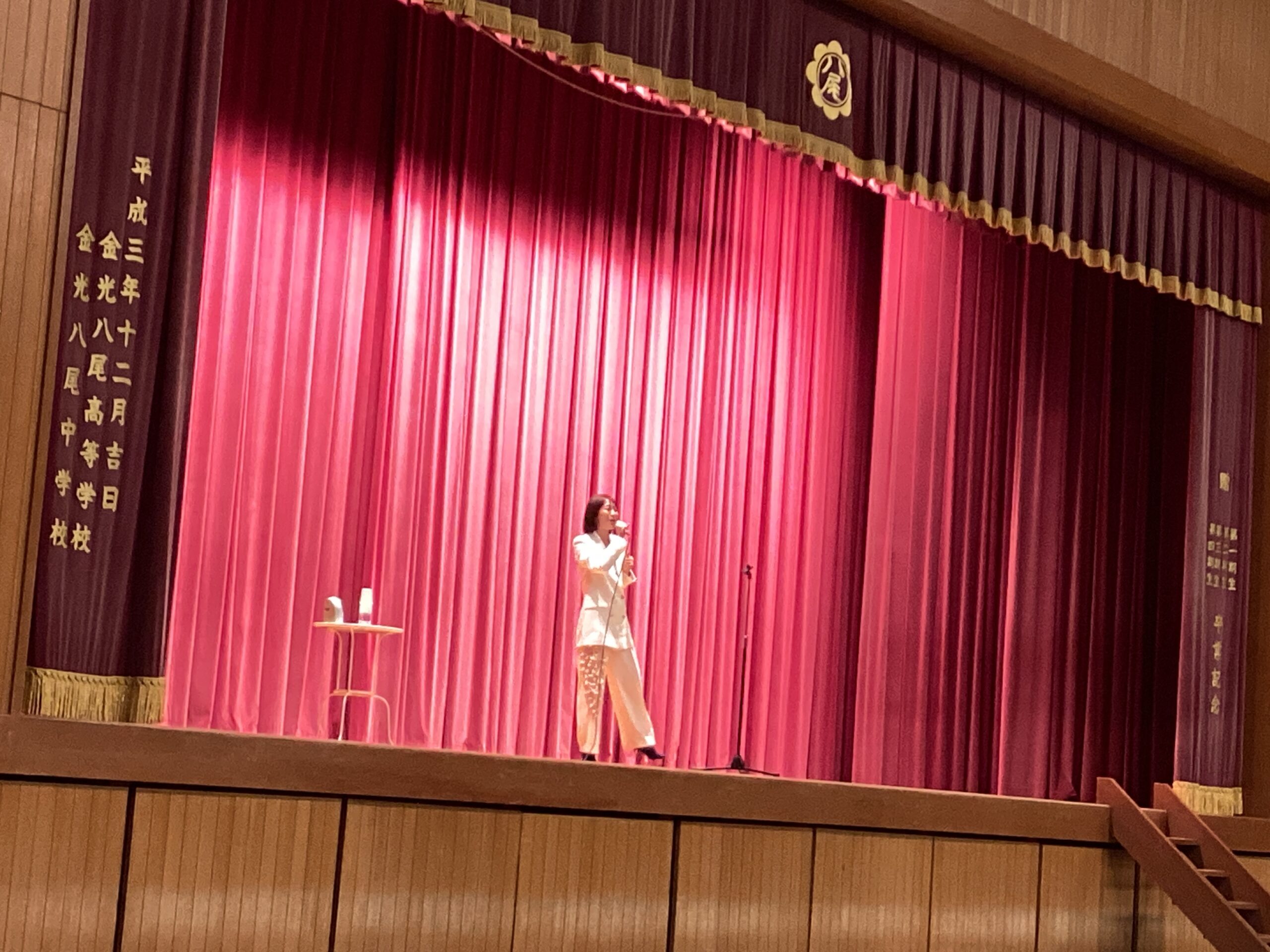 今年度の人権文化講演会は、シンガーソングライター・家族相談士の肩書をもつ、玉城ちはるさんにお越しいただき講演と歌の披露をしていただきました。自身の生い立ちや現在の家庭環境について話をして、時折歌を交えながら楽しく進めていただきました。様々な文化や価値観を持つ方々との生活の様子を知ることで、共感できる内容が多かったです。