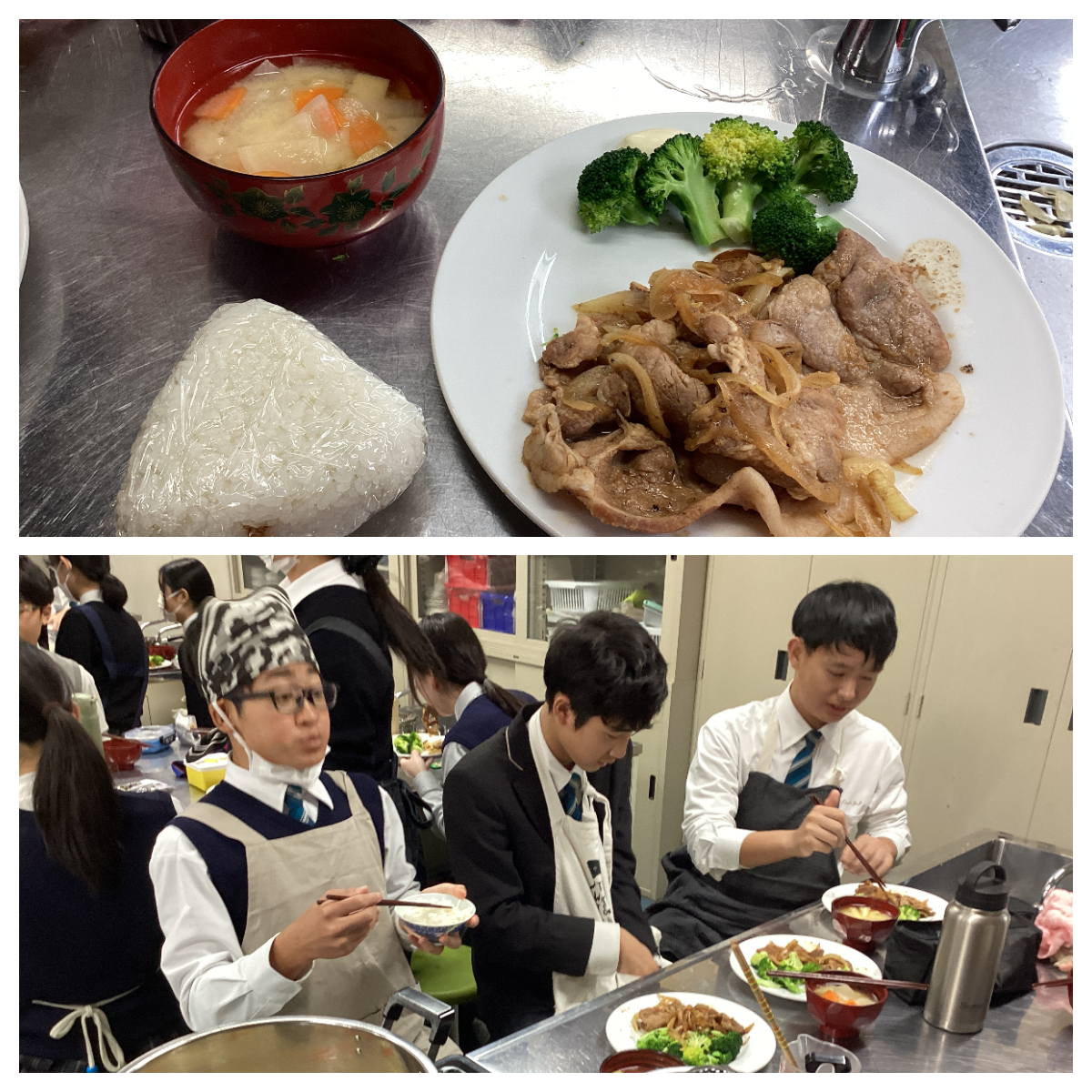 本日、中学2年生は、家庭科の調理実習を実施しました。メニューは、豚の生姜焼き、みそ汁です。普段料理をする習慣がある生徒と、そうでない生徒が、お互いに協力をしながら調理に参加していました。