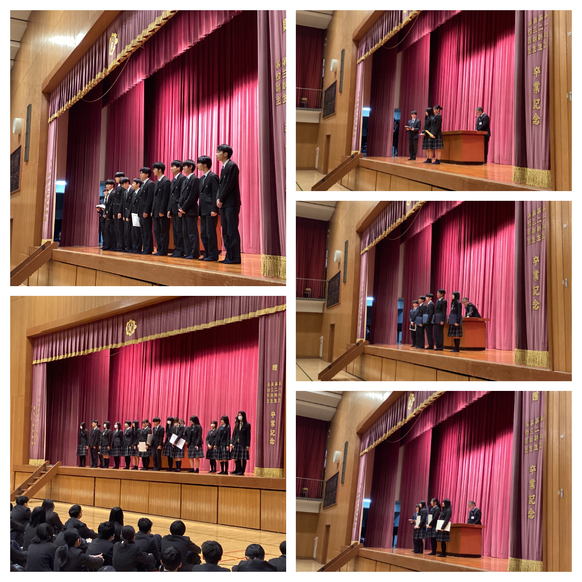 表彰式では、2学期に功績を残した、男子バレーボール部、ダンス部、美術部、英語弁論大会、税の作文コンクールの生徒を、学校長より表彰しました。3学期もぜひ頑張ってください。