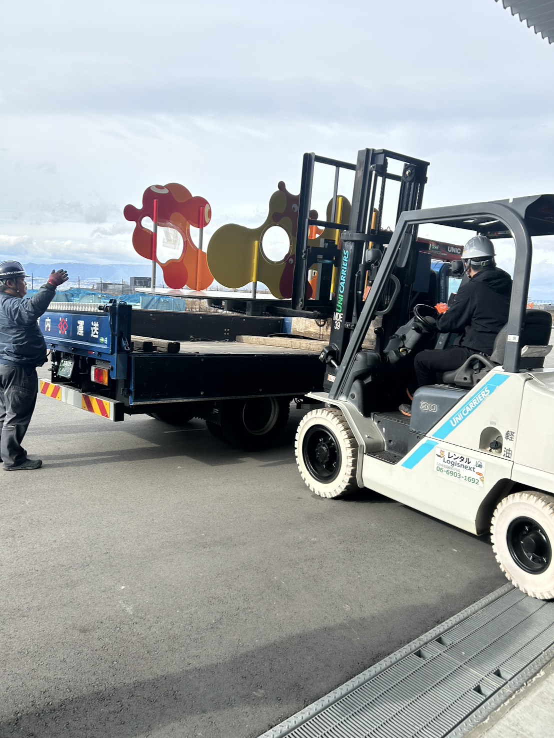 12期生の地主倫弘様から、昨年の同窓会「40周年の集い」の際に「関西万博会場の備品などをリユースする「ミャク市!」で落札したモニュメントを寄贈したい」との申し出があり、本日(1月20日)、万博のイベント会場から本校へ送られてきました。