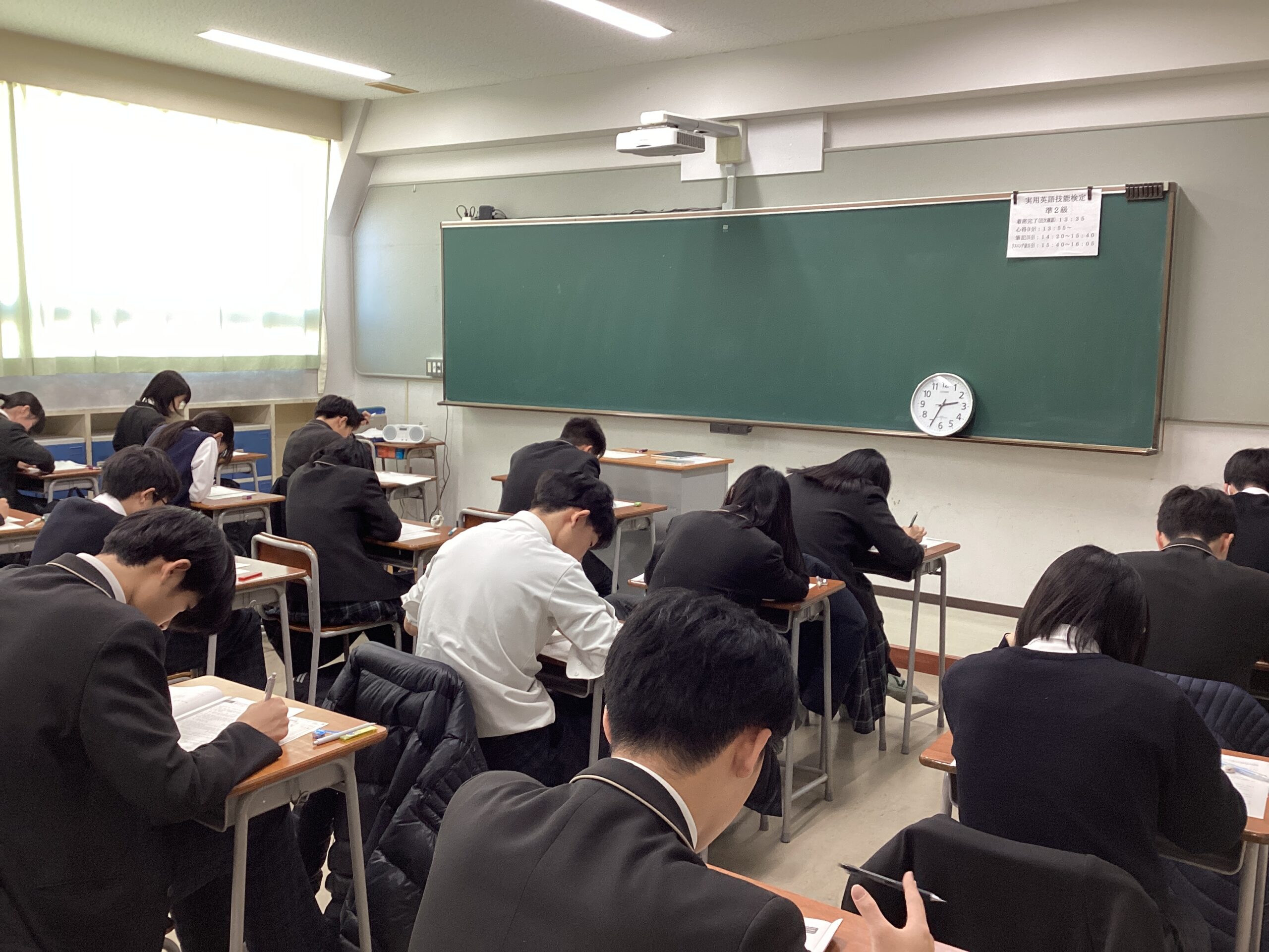 本日、中学全学年を対象に、第3回実用英語技能検定を実施しました。冬期講習から中学校全体で受験級ごとにクラスを分けて対策を始め、3学期からは朝の時間や講習の時間を英検対策に充てて、受検級合格を目指して取り組んできました。対策の成果が発揮されることを願っています。